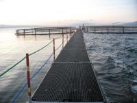 Floating walkway can be designed by customer requirements. It can be used as floating dock for fish boat working platform, or the floating bridge connecting the fish cages.